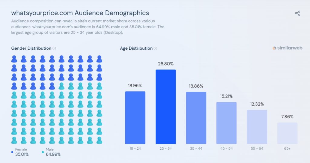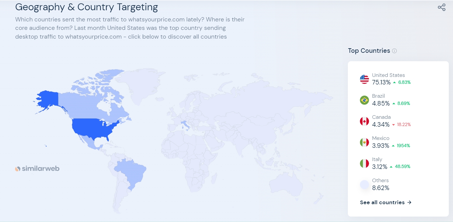 - US share: Over 75% of Whats Your Price traffic comes from the United States