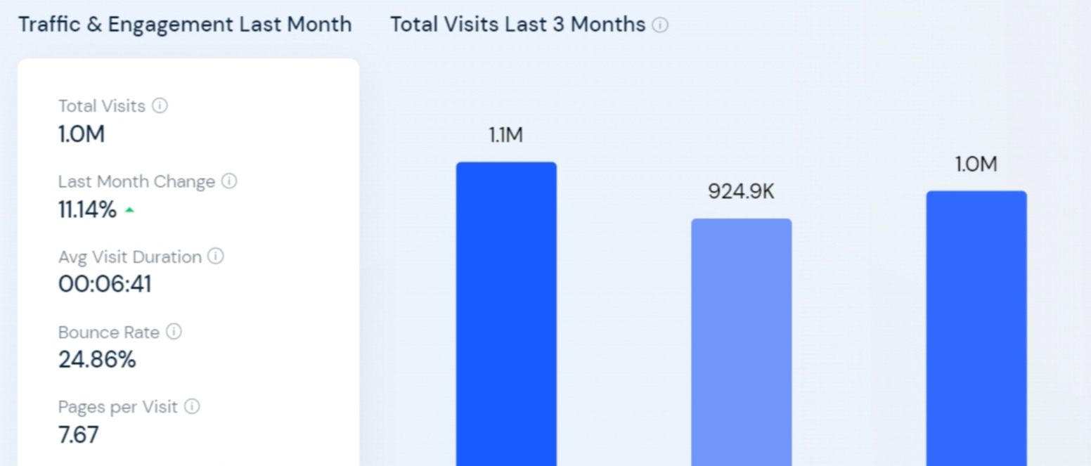 According to it, the site has around 1 million monthly visits on average, and that’s a stable number that doesn’t change much over time.
